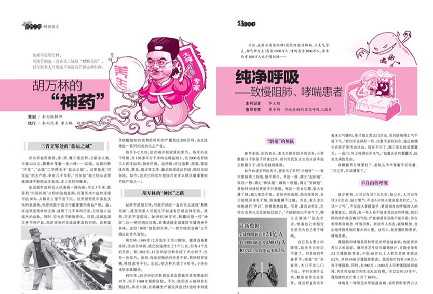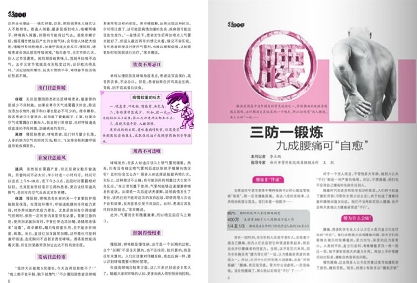 杂志既有研究性、理论性的文章,也有更具后盾实用价值的特色性文章。读物的呈现方式设计了高彩报、养生读物、食品快讯、品牌博览、症状查询等板块,信息呈现方式丰富,易于读者接受。